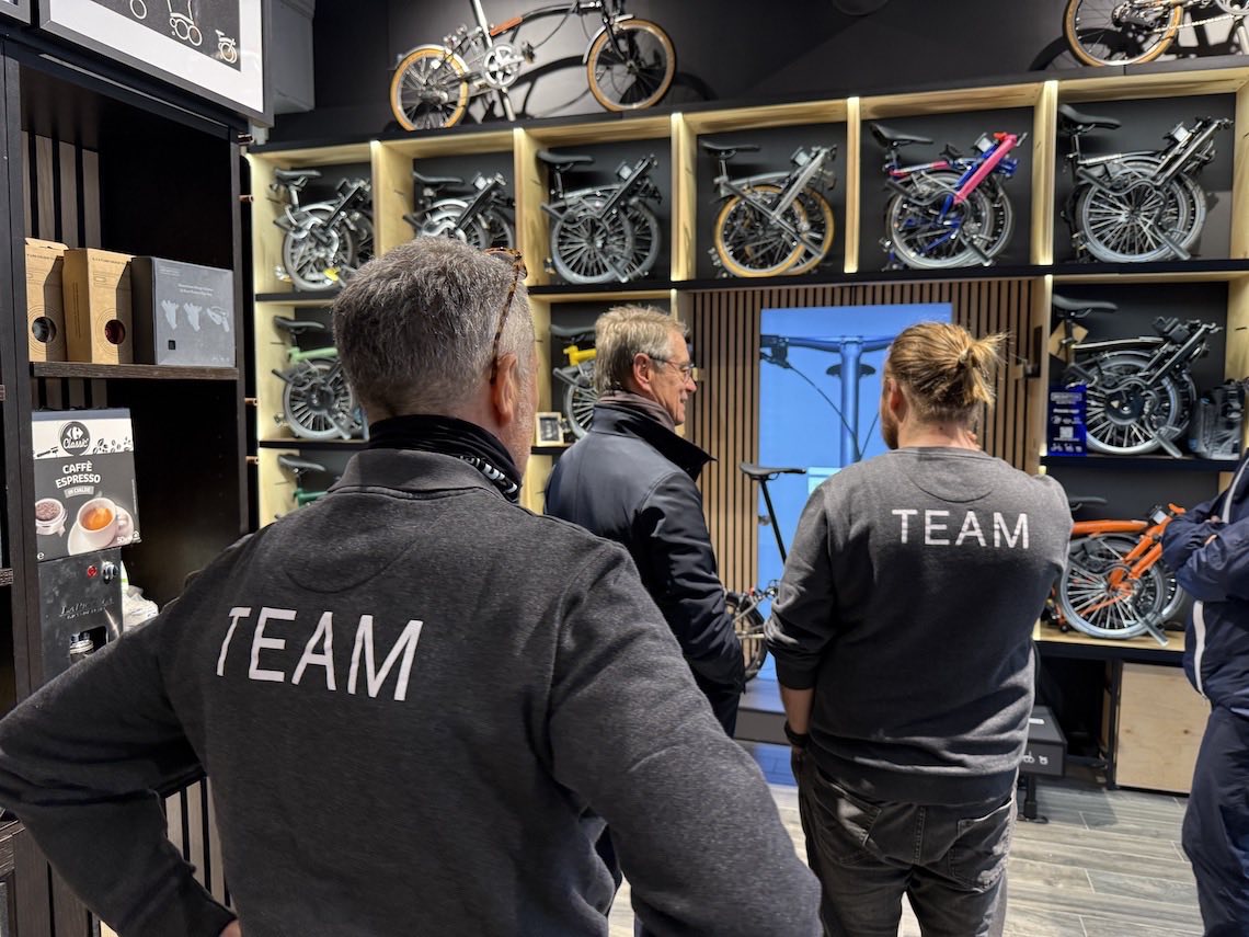 Fabrizio, cosa ti ha spinto ad intraprendere questa avventura? ” Mah, tutto nasce da un viaggio a Londra che feci nel lontano 2002 quando più per curiosità acquistai la mia prima bici Brompton, che ancora oggi posseggo. Devo dire che fu una vera e propria folgorazione, perché da allora non ho più smesso di utilizzarla “. Ma dalla passione come sei arrivato al commercio? ” In quel periodo facevo un’altro lavoro, che anche se redditizio non mi gratificava totalmente. La scelta non è stata facile, ma credevo fermamente nella Brompton ed ero sicuro che Roma poteva essere pronta a recepire questa bici innovativa. Così lasciai tutto ed aprii il mio primo negozio, Bicity. L’investimento fu importante, ma la risposta subito positiva. Da allora è stato un crescendo, nel 2018 nasce BCT Roma e con molto impegno e validi collaboratori sono arrivato fino qui…”