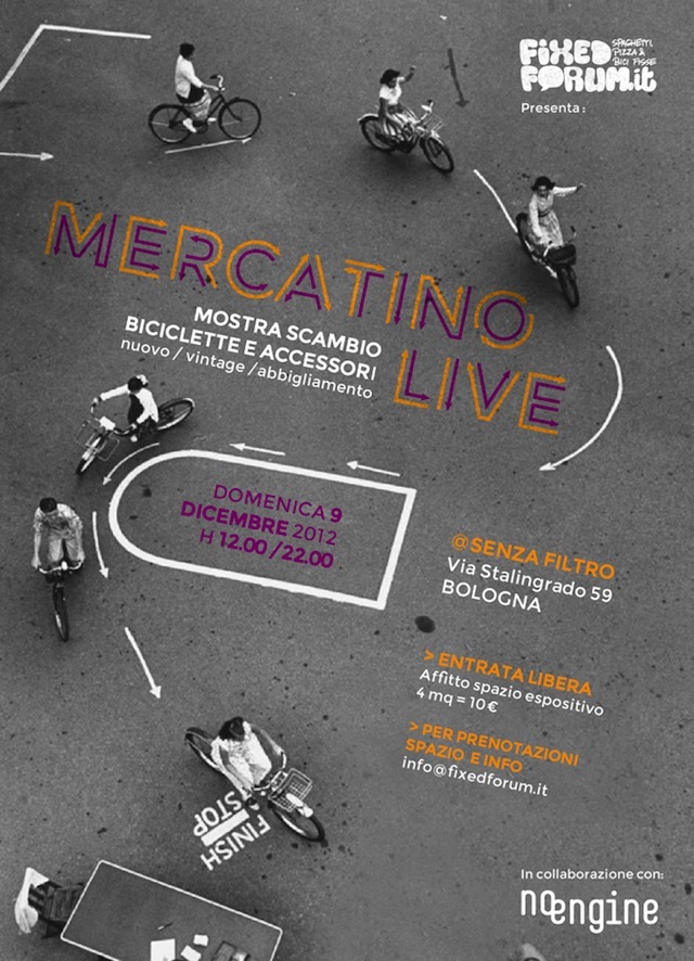 Mercatino Live, il 9 Dicembre 2012, allo spazio Ex Samp (ora SenzaFiltro) in Via Stalingrado 59 a Bologna (a pochi metri dalla fiera dove si svolgerà il Motorshow) all’interno della fiera NOENGINE organizzata da Planimetrie Culturali.